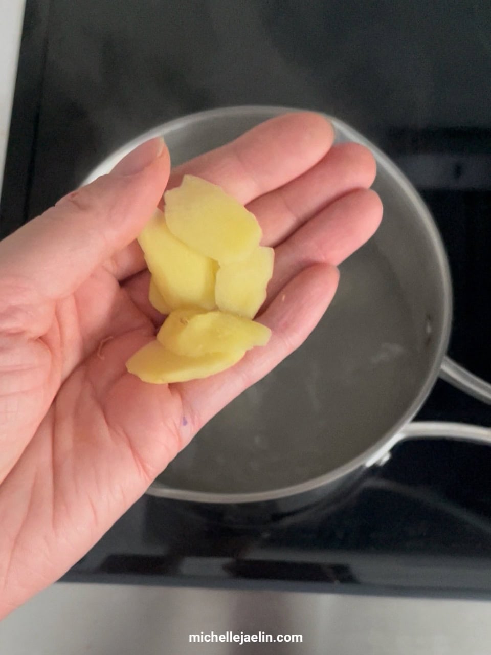 Fresh ginger root flavors the dish but it also has lots of health benefits. It’s anti-nausea and anti-inflammatory. Ginger also contains antioxidants and can help with symptoms such as stomach upset.